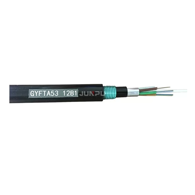 The GYFTA53 type optical cable places the 250um optical fiber in a loose sleeve made of high modulus plastic, and the sleeve is filled with waterproof filler. The center of the optical cable core is an FRP non-metallic reinforcement. The sleeve and the filler are twisted around the reinforcement to form a compact circular optical cable core. The optical cable core is covered with APL, the optical cable core is covered with a thin PE inner sheath, and the inner sheath is filled with waterproof glue. After the steel belt is armored, the PE outer sheath is added to form a cable.