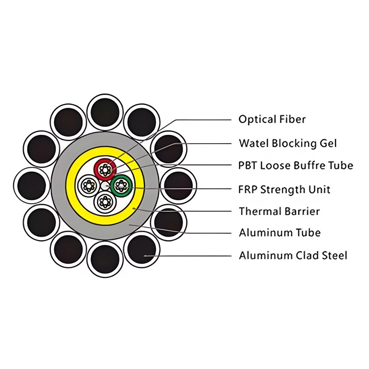 OPGW-1 Fiber Optic Cable with Aluminum PBT Tube – 12 to 144 Cores, G.652D/G.655C