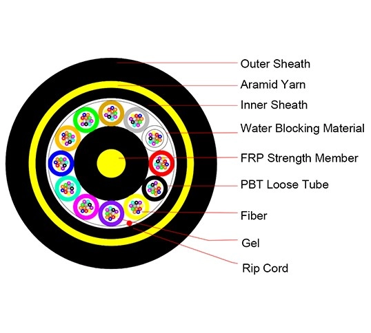 ADSS cable is loose tube stranded fibers 250um, are positioned into a loose tube made of high modulus plastic. The tubes are filled with a water-resistant filling compound. The tubes and fillers are stranded around a FRP as non-metallic strength member into a compact and circular cable core,After the cable core is filled with filling compound , it is covered with PE inner sheath. After stranded layer of aramid yarns are applied over the inner sheathas strength member, the cable is completed with PE or AT (anti-tacking) outer sheath.